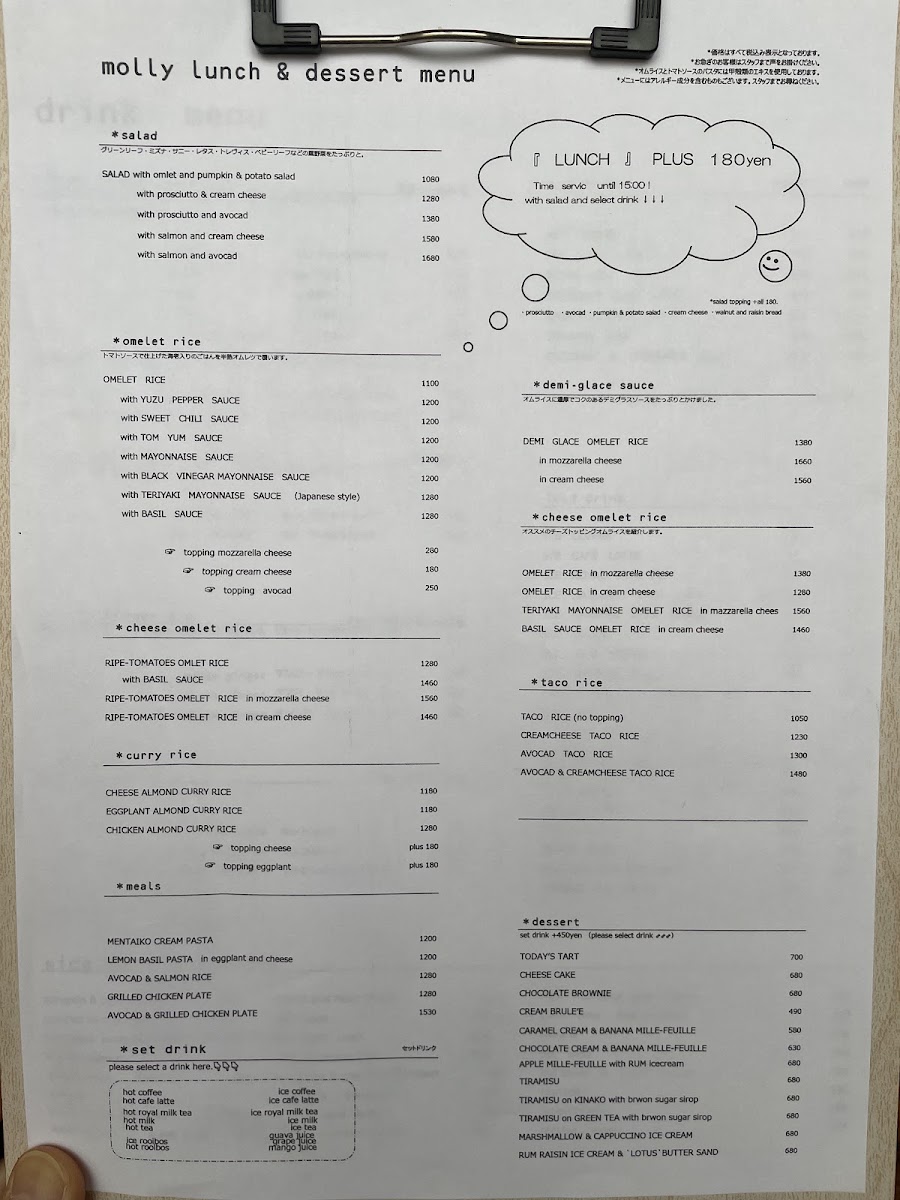 Molly’s menu is a delightful fusion of comforting and unique offerings that cater to a variety of palates. One popular standout is the highly customizable omurice, bathed in a delectable classic demiglacé sauce that elevates the simple fried rice into a flavorful masterpiece. Customers rave about the eggplant curry rice, with one patron declaring it the best curry of their life, prompting culinary curiosity in all who visit. The café also boasts a range of dishes including grilled chicken with avocado — a healthy option that scores high marks from health-conscious diners.